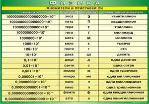 Таблица "Множители и приставки СИ"