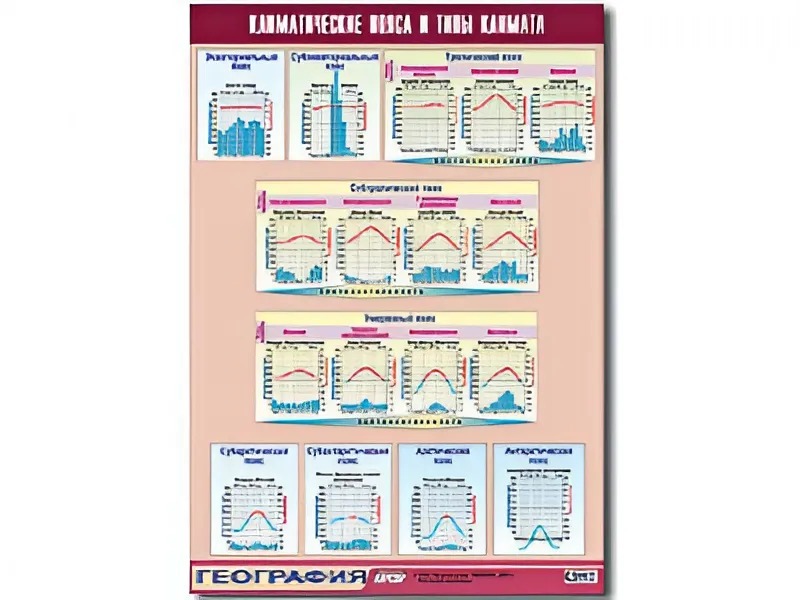 Таблица демонстрационная "Климатические пояса и типы климата" (винил 70*100)