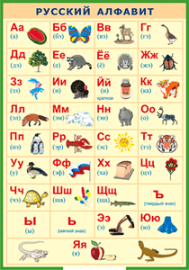 Главная Каталог Демонстрационные учебно-наглядные пособия Кабинет начальной школы Таблица "Русский Алфавит в картинках" (100х140 сантиметров, винил)