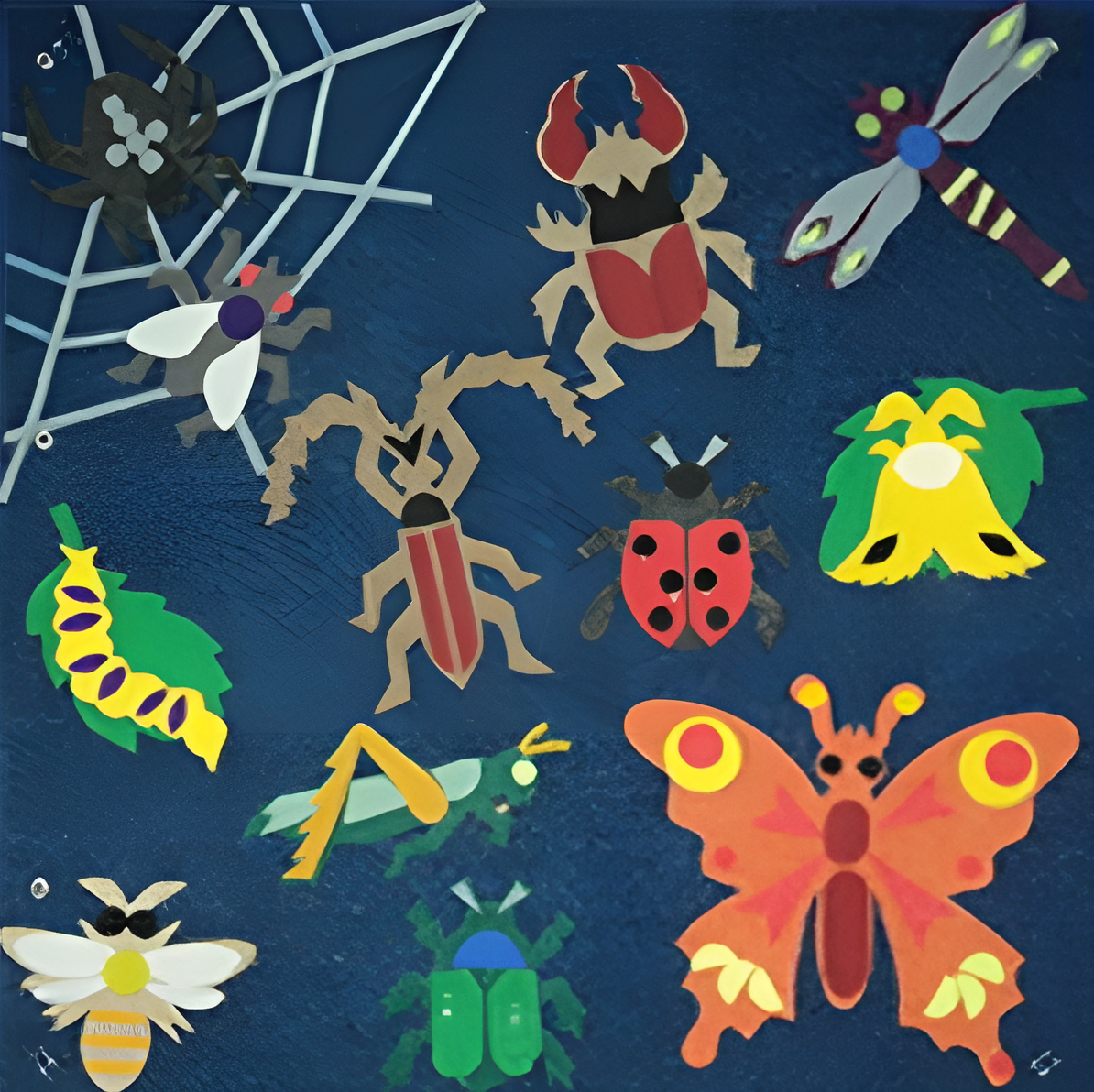 В состав входит 12 моделей насекомых. Изготовлено из ковролина. Предназначено для работы с детьми от 3 до  10 лет.