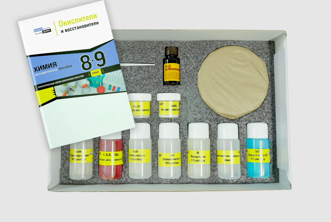 Набор «Окислители и восстановители» из серии #КлассДома позволяет научиться экспериментально определять различные окислители и восстановители. Также он позволит получить и изучить свойства таких газов, как хлор, оксид серы (IV), оксид азота (IV) и сероводорода. Эксперименты проводятся с небольшими количествами веществ, поэтому не требуют специально оснащённой лаборатории.