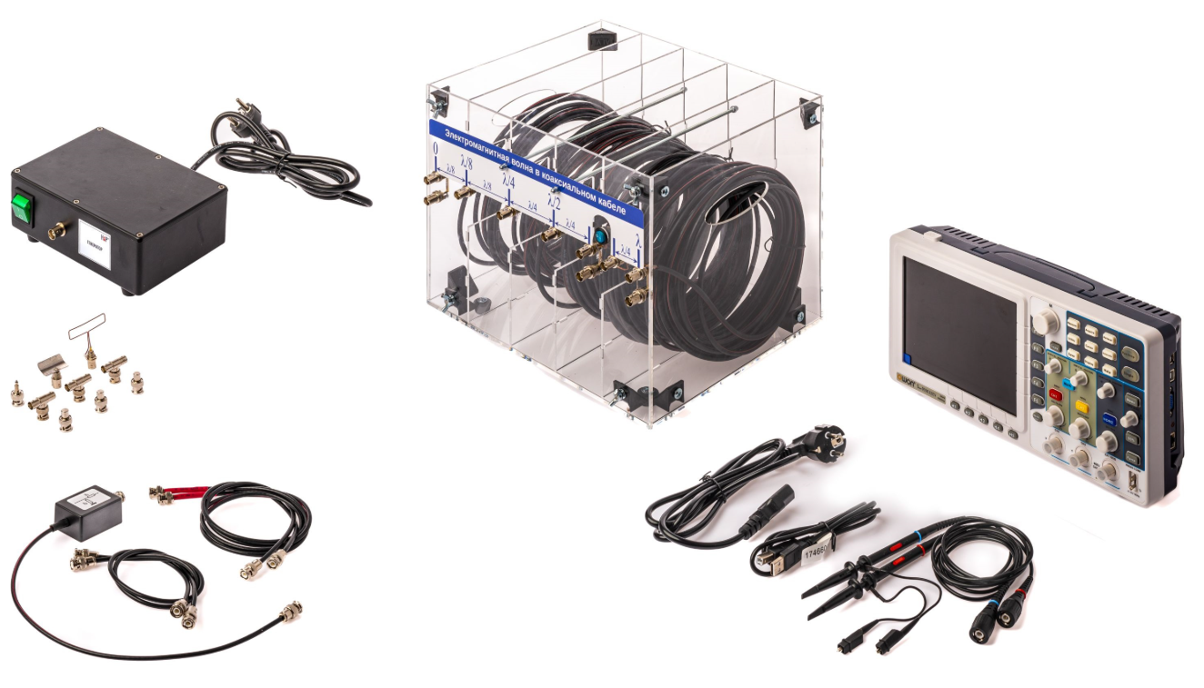Набор для практикума и проектной деятельности «Электромагнитная волна в коаксиальном кабеле» предназначен для изучения распространения электромагнитной волны в коаксиальном кабеле и измерения ее скорости, а также для изучения стоячих электромагнитных волн и резонансных явлений, возникающих в отрезке кабеле при различных условиях отражения волны на его концах.