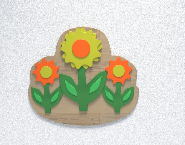 Настенная панель с цветочками является дополнением к комплекту модулей, состоящему из бизиборда и настенной панели. Не может выступать в качестве самостоятельного модуля из-за отсутствия собственной игровой ценности. Вместе с бизибордом «Вишня» и настенной панелью они образуют игровой комплект для детей от 1 года. Все составляющие набора крепятся к стене. Основа настенной панели «Ромашки» выполнена в абстрактной форме и окрашена в цвет светлой древесины; на основе размещены яркие оранжево-жёлтые цветы.