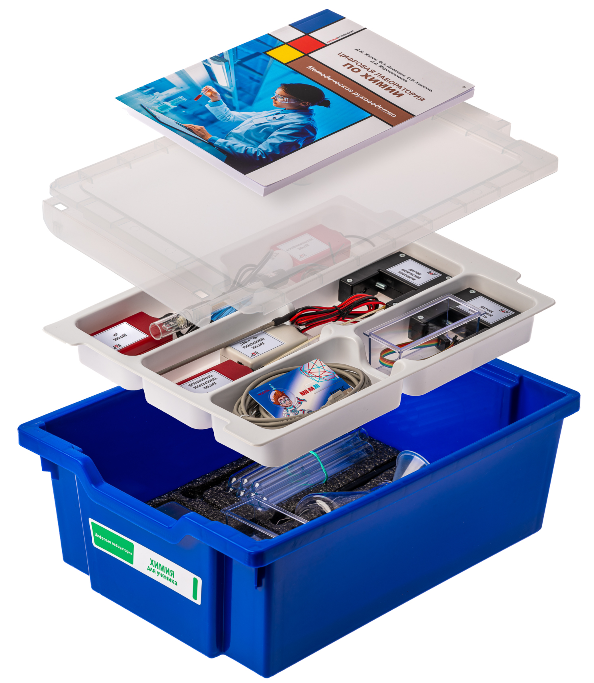 Комплект лаборатории позволяет проводить эксперименты инструментальными методами, с использованием цифровых датчиков и дополнительной оснастки.