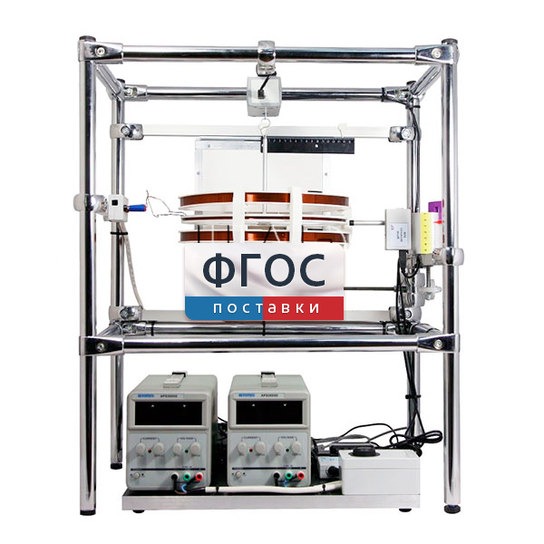Лабораторная установка включает измерительную катушку, магнитную систему для создания магнитного поля, систему питания и комплект датчиков для измерения силы тока, индукции магнитного поля и силы. Принцип работы установки состоит в измерении силы, действующей на катушку с током, помещенную в магнитное поле соответствующей конфигурации. Система питания, включающая два источника питания и два датчика тока, смонтирована на отдельной платформе. Двухкоординатное перемещение датчика магнитного поля, необходимое для регистрации пространственной картины поля, осуществляется с помощью ручных винтовых механизмов.