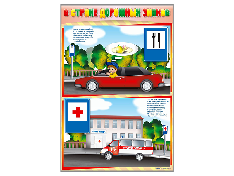 Стенды представляют собой информационные панели, на которых размещены сведения о дорожных знаках в стихотворной форме для юных участников дорожного движения.