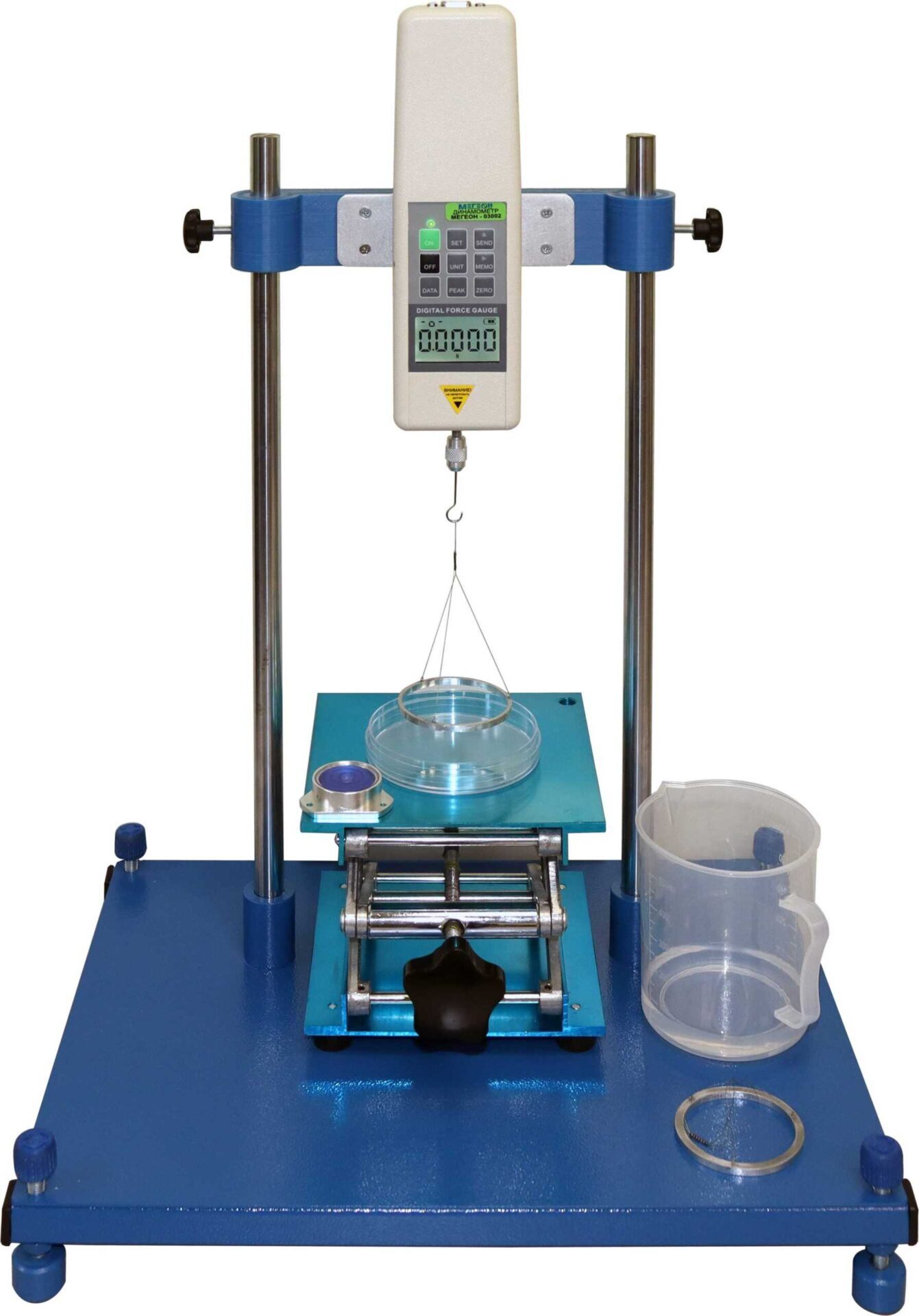 Установка лабораторная «Поверхностное натяжение в жидкости» предназначена для проведения лабораторной работы «Измерение силы поверхностного натяжения жидкости методом отрыва кольца» по курсу «Молекулярная физика и термодинамика» в высших учебных заведениях.