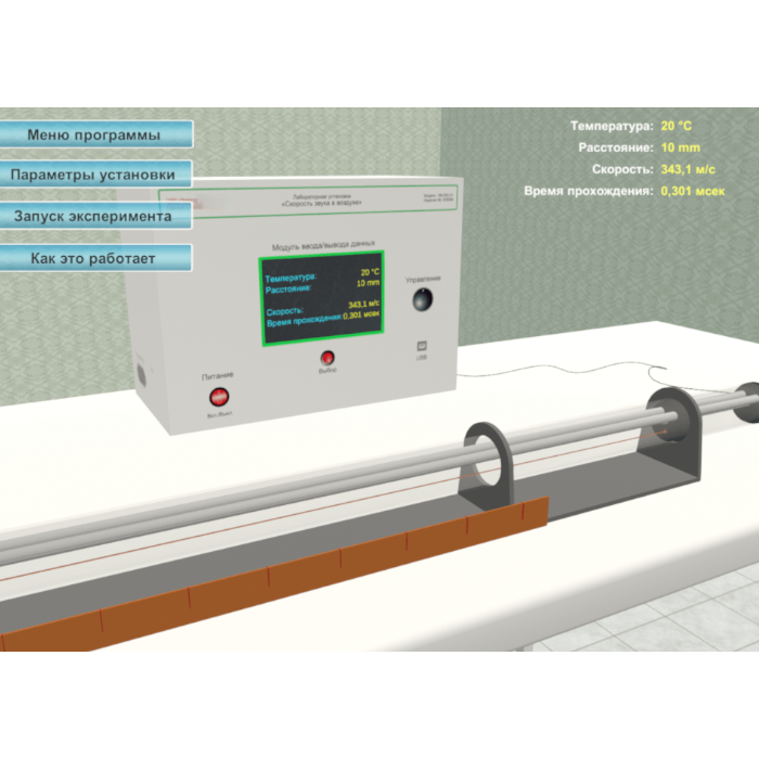 Главная Каталог Учебно-лабораторные комплексы Виртуальный лабораторный стенд «Скорость звука в воздухе»